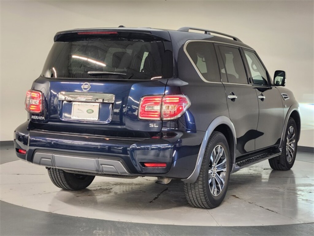 Stop in and test drive this Nissan Armada today! Clean CARFAX. Priced below KBB Fair Purchase Price! Hermosa Blue Pearl 2019 Nissan Armada SL SL RWD 7-Speed Automatic 5.6L V8 DOHC 32V Endurance Blind Spot Warning, Intelligent Back-Up Intervention (I-BI), Intelligent Distance Control (I-DC), Power Sliding Moonroof w/Front Tilt & Rear Slide, Premium Package, Rear Cross Traffic Alert (RCTA).